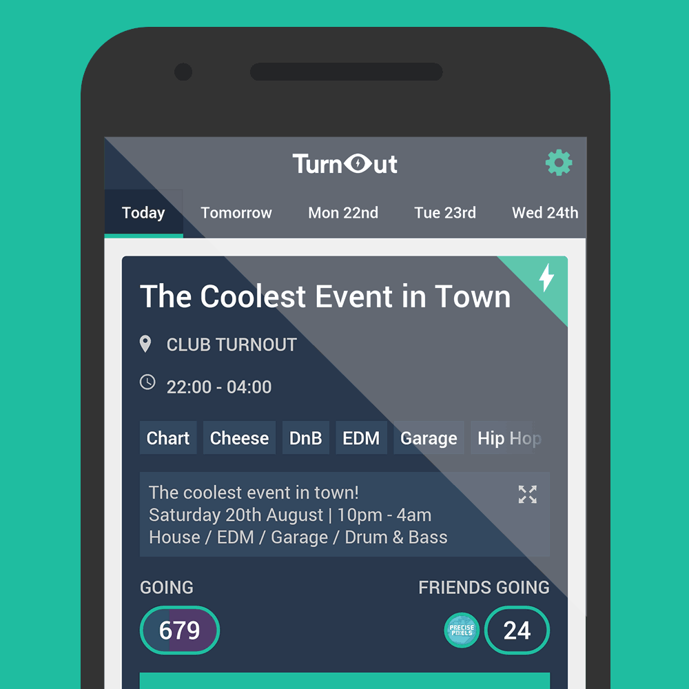 Smartphone app for finding nearby nightlife events based on music taste, busyness and dating preferences, powered by a proprietary recommender system.